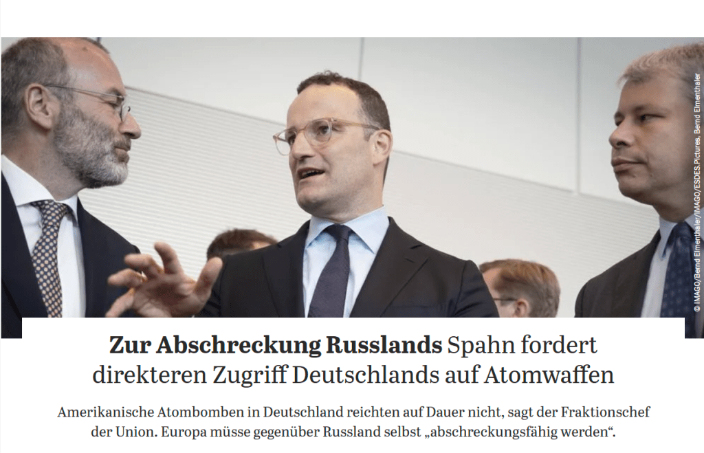 Logik nach 1984; Jene Politikmarionette welche mit dem Lockdown so viel Menschenleben wie möglich retten wollte fordert jetzt Massenvernichtungswaffen mit denen so viel Menschen wie möglich getötet werden können!