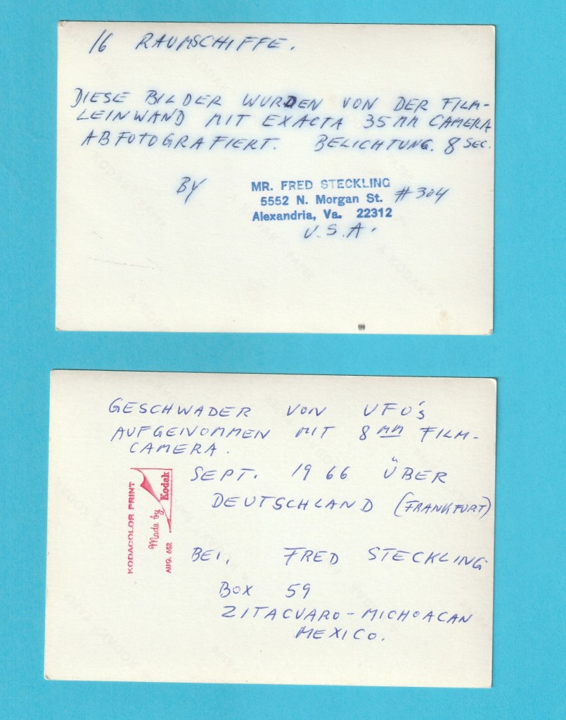 Fred Steckling, wohnte in der 5552 North Morgan St. Alexandria Va, bei