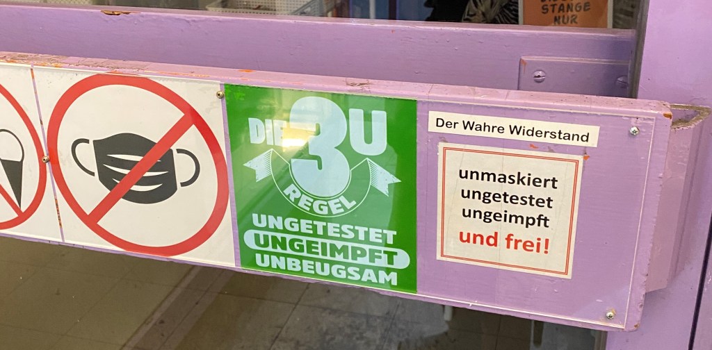 Kein Eintritt mit Maske / 3 U Regelung, Unmaskiert / Ungetestet, Unmaskiert / Nein zur Impfung…..