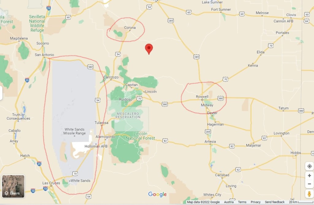 Das „Ufo“ stürzte zwischen Roswell und Corona ab, etwa 50 bis 100 km